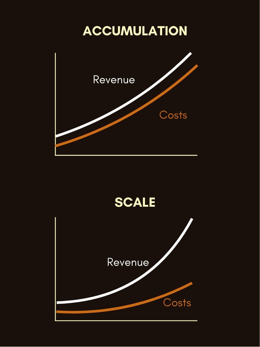 But you can't scale what you don't own. You can only ensure your dependency on it stays intact as you accumulate more of it.